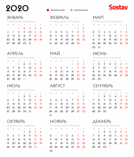В 2020 году россиян ожидают 248 рабочих и 118 выходных дней.