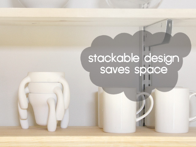 В результате появился продукт, имеющий необычную форму и три ножки. Именно поэтому кружка отличается от всех остальных чашек большей устойчивостью на неровных поверхностях, ее удобно брать как одной, так и двумя руками, выполнена кружка из высокопрочного пластика, поэтому ее можно разогревать в микроволновой печи и мыть в посудомоечной машине.