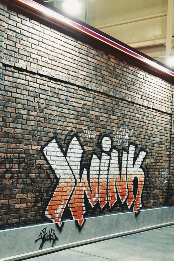 Атмосферу кинотеатра 80-х удалось воссоздать благодаря использованию светодиодов, стилизованных под неон, декоративного кирпича, светильников, лайтбоксов и объемных вывесок, граффити с тэгами Wink. Мягкий рассеяный свет на стенах кинотеатра сделал их идеальной фотозоной.
