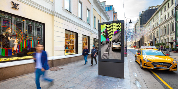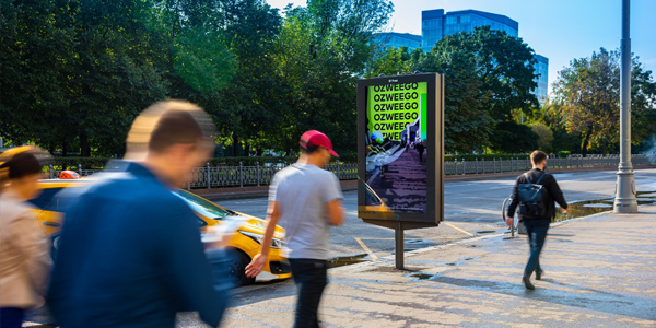 В рамках рекламной кампании «Настоящее создается сейчас», бренд adidas разработал серию необычных видео-роликов, а Russ Outdoor реализовал эту концепцию на своих цифровых экранах. Кампания приурочена к запуску кроссовок OZWEEGO — культовая модель 1998 года, которая в 2019 году вышла в обновленном дизайне. Аудитория кампании — прогрессивная городская молодежь, хорошо знакомая с диджитал трендами, поэтому привлечь ее внимание можно, используя нестандартные рекламные решения.