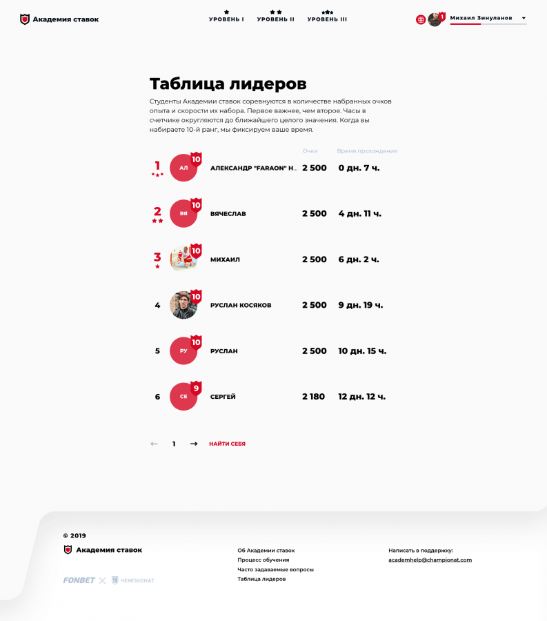 Набирая очки опыта, студент повышает ранг в «Академии». В первый раз для перехода на новый ранг потребуется 50 очков, но дальше эта задача усложняется.
