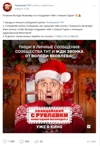 Бот анализирует информацию из аккаунта и в зависимости от пола подписчика высылает сообщение, заранее записанное актером Сергеем Буруновым. Кому-то может особенно повезти, и полковник Яковлев лично споет в трубку бессмертный хит группы «Божья коровка» про гранитный камушек. Подробнее на Sostav.