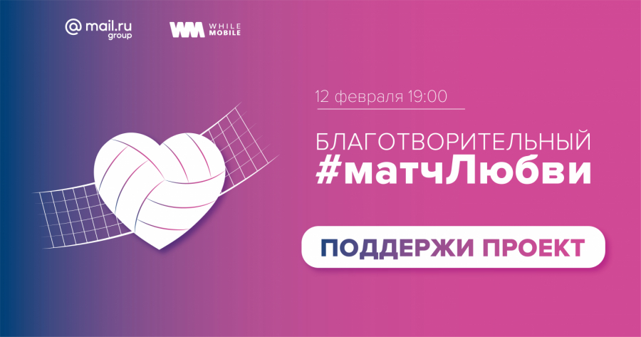 Скоро День святого Валентина — праздник, когда не только дарят милые подарки и открытки, но и делают добрые дела. 12 февраля Mail.ru Group вместе с brandformance-агентством WHILEMOBILE проведут товарищеский волейбольный матч в поддержку проекта «Арт-терапия для солнечных детей» благотворительного фонда «Синдром Любви» на сервисе Добро Mail.ru.