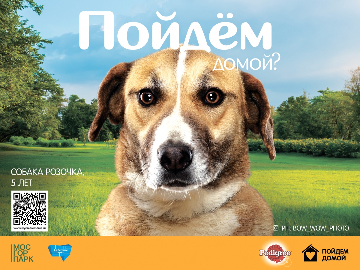 Интерактивная фотовыставка «Пойдем домой?» рассказывала о собаках, которые ищут хозяев. Механика проекта позволяет забрать будущего питомца из приюта в режиме реального времени.