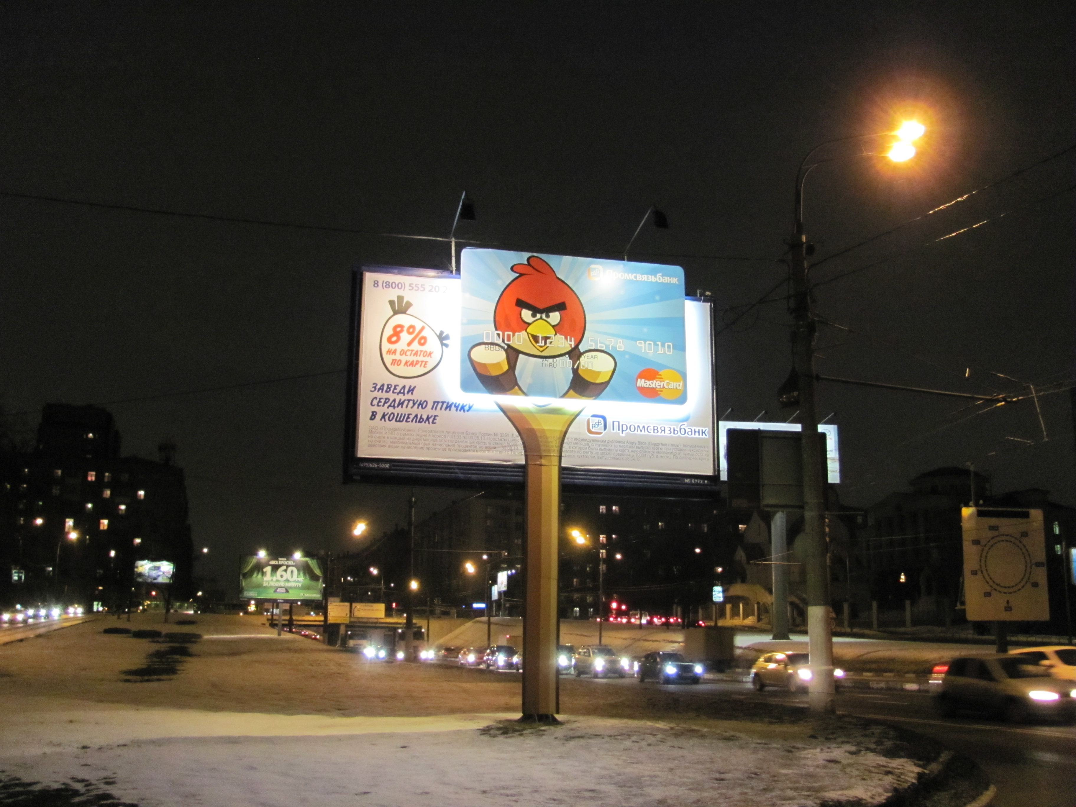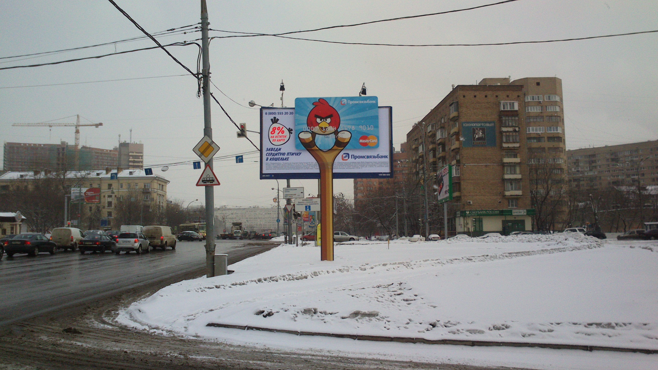 Нестандартную наружную рекламу запустил «Промсвязьбанк»: на улицах Москвы появились рекламные конструкции с изображением «злых птичек» из популярной игры. Таким образом банк и креаторы из коммуникационной группы «Иммедиа Холдинг» хотят повысить узнаваемость банка среди молодой аудитории.