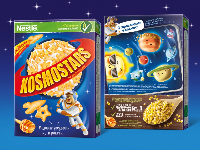 Готовые завтраки Kosmostars от компании «Нестле» давно заслужили любовь российских детей и их родителей. Эта привязанность настолько велика, что сегодня для бренда Kosmostars Россия — рынок № 1. Вот почему задача провести редизайн упаковки «космических» завтраков была для агентства настолько ответственной.