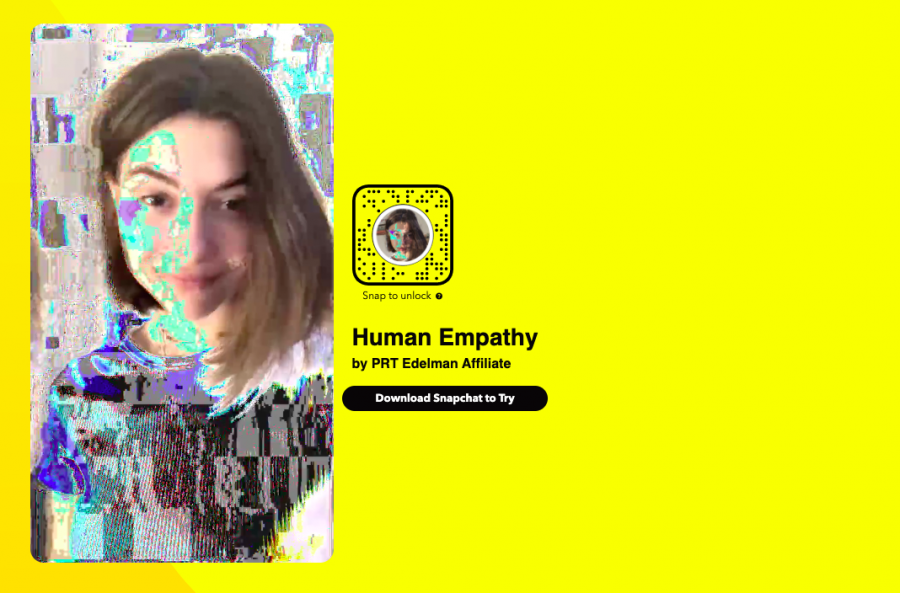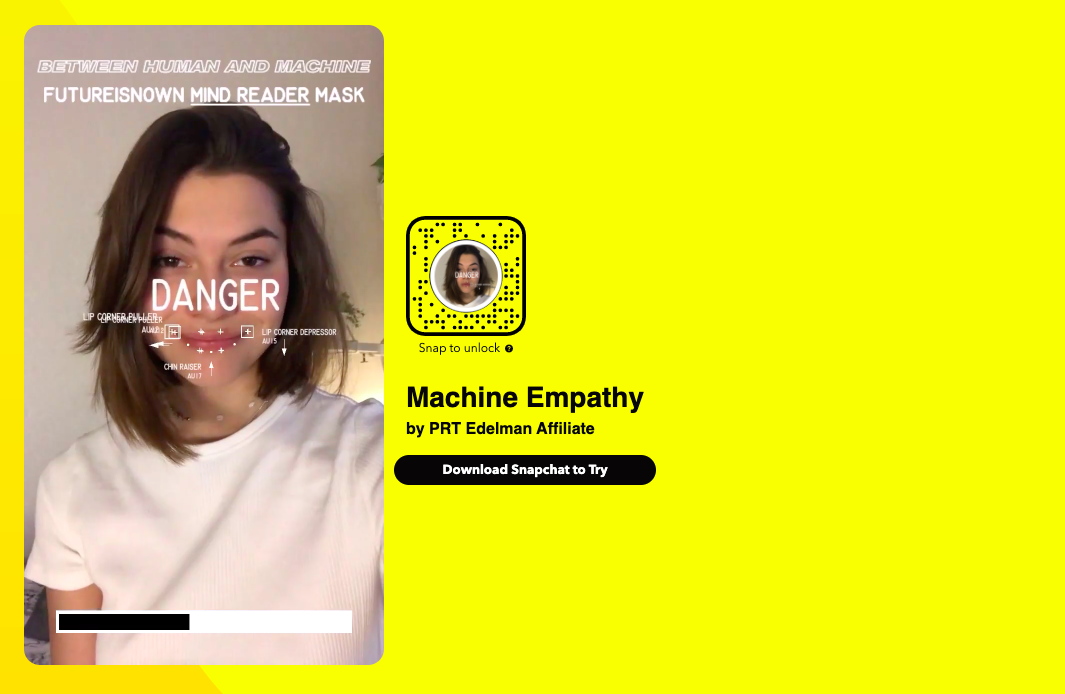 Первая маска, Human Empathy, распознает изменения в мимике собеседника с точки зрения благожелательности или безразличия. При нейтральном выражении лица маска закрывает говорящего за глитчем, при улыбке глитч рассеивается. Маска напоминает о том, как важно проявлять эмоции.
