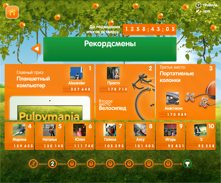 В игре 6 этапов с 6 уровнями в каждом из них. После прохождения одного уровня игроку начисляются очки. Игра носит конкурсный характер, - по итогам каждой недели TOP-20 пользователей получают призы – OKи (внутренняя валюта «Одноклассников»). По итогам всей игровой кампании тройка победителей получит призы - iPad, велосипед и портативные колонки.