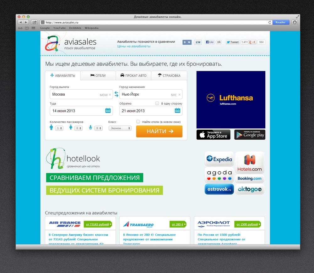 Логичными дополнением большого проекта стала айдентика для самого Aviasales.ru, которая стройно вписывает сервис в новую визуальную систему.