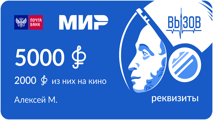 В поддержку премьеры художественного фильма «Вызов» виртуальная «Пушкинская карта» в приложении «Госуслуги» сменит дизайн. Пушкин в скафандре появится в приложении «Госуслуги Культура», а также на афише фильма и в наружной рекламе. По словам креаторов, космическая тематика и Пушкин в шлеме космонавта напомнят пользователям о возможности увидеть картину бесплатно.