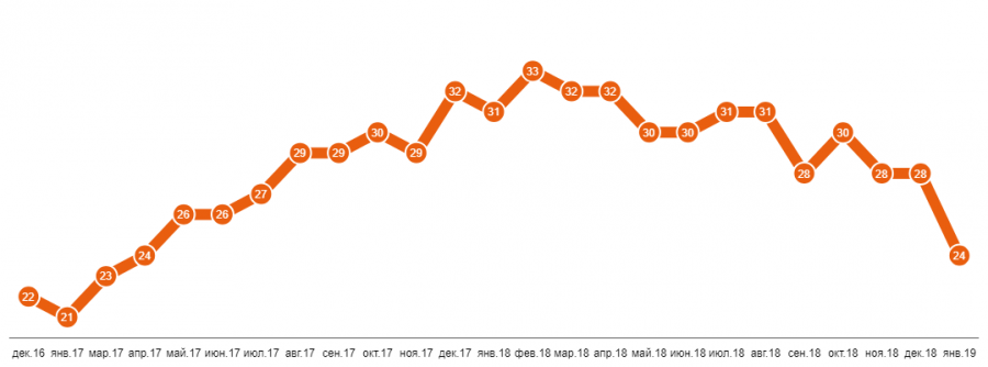 Пессимизм россиян в связи с текущей потребительской ситуацией растет. По данным январской волны опроса ВЦИОМ (проект «Спутник») Индекс потребительского доверия упал до 34%, что сопоставимо с показателями разве что двухлетней давности.