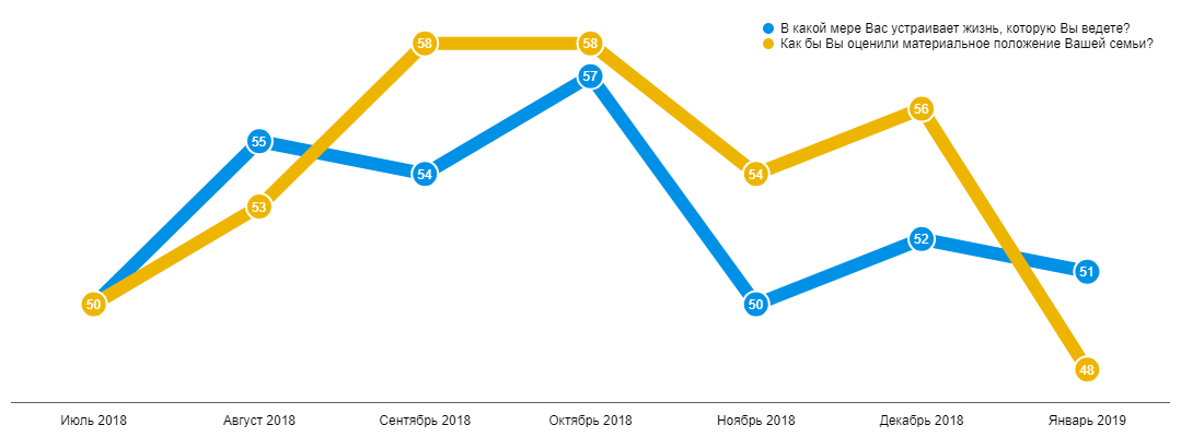 Пессимистические настроения россиян вполне могут быть связаны с их ухудшающимся материальным положением. Об этом свидетельствует динамика одной из составляющих Индекса социального самочувствия. Но при этом доля тех, кого эта жизнь устраивает, практически, не меняется. Во всяком случае, пока не меняется. Как же так? Вот так. Это Россия.