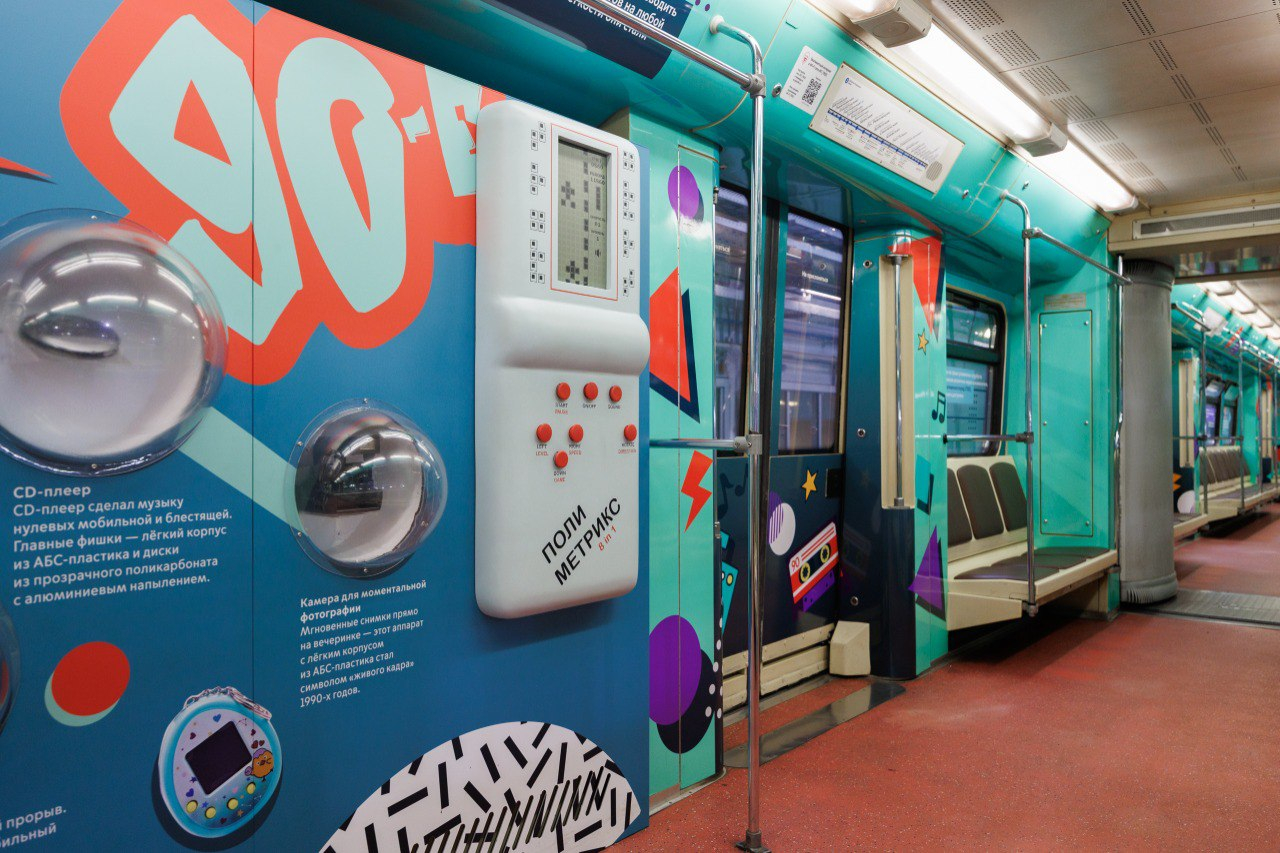 Каждый вагон поезда рассказывает историю развития полимеров, из которых состояли предметы повседневного пользования, задающие тренды своего времени — телефоны из бакелита 1920-х годов, видеокассеты из 1990-х, умные часы из поликарбоната 2010-х годов. Каждый вагон — это отдельная страница истории и будущего: первый погружает в эпоху прабабушек и прадедушек, второй — в динамичные 1990-е, третий возвращает в ностальгические 2010-е, четвертый — посвящен настоящему, а пятый — будущему. TWIGA CG взяла на себя разработку инсталляций и оформления первых трех вагонов поезда.