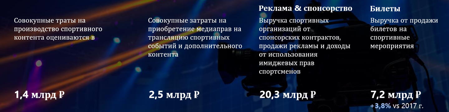 Производства и приобретения прав на спортивный контент достиг 3,9 млрд рублей. Дистрибуция, которая включает выручку от спонсорства, прямой рекламы, а также продажи билетов, составила 27,5 млрд.