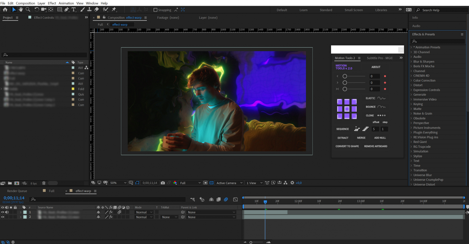 - благодаря интеграции с другими программами от Adobe в After Effects можно быстро загрузить файлы из Photoshop, Illustrator или Premiere Pro.