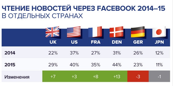 Все меньшее количество пользователей, потребляющих новостной контент в интернете, делают это через главную страницу СМИ и корпоративного сайта бренда. В США только 36% потребителей находят новости напрямую с главной страницы СМИ или интересующего бренда. 40% делают это через поисковые запросы и 35% - через соцсети.