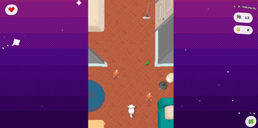Как добавили креаторы Re:evolution, у которых есть домашние животные, они нередко сталкивались с ситуацией, когда их питомцы добегали до входной двери, в которую позвонил курьер, гораздо быстрее своих хозяев. Так появилась идея создания пиксельной гонки на скорость и результат.