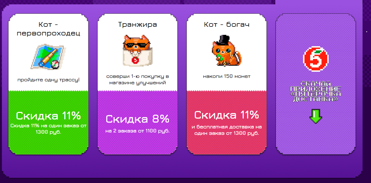 Уже давно в России наступила эра геймификации и мы решили, что возможность «погонять» котов за доставкой от «Пятёрочки» — это прекрасный способ использовать актуальный тренд на практике.
