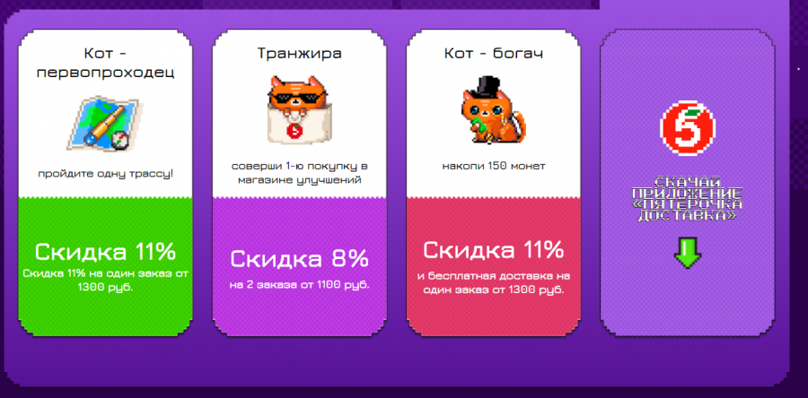 Кроме того, были созданы отдельные ачивки для пользователей, за которые каждый получил промокод на скидку в «Пятёрочка Доставка».