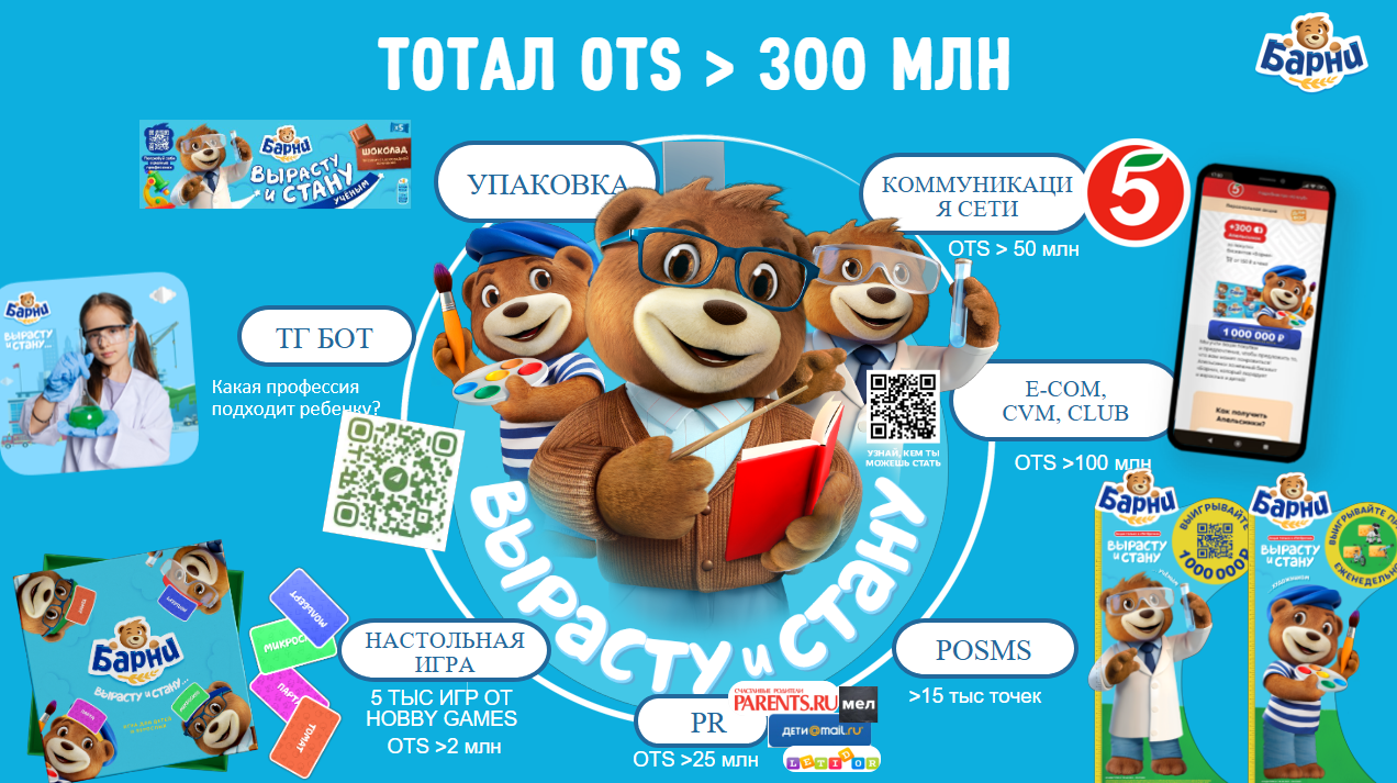- 50 млн OTS в коммуникациях сети «Пятёрочка»;