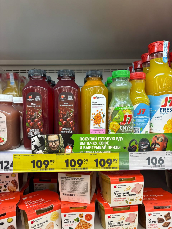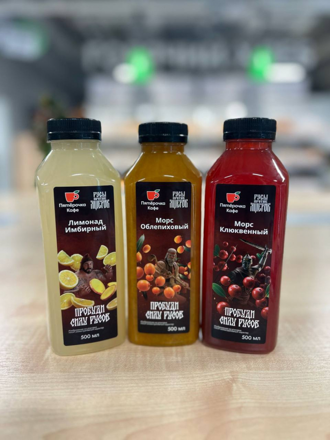 Ключевым элементом стал морс «Богатырский». Игроки могли не только встретить его в игровом мире, но и купить в офлайн-магазинах «Пятёрочка» и через доставку. Сам продукт подчеркивает главную коммуникацию бренда — «Пятёрочка выручает», а на упаковке заявлено: «Пробуждает силу Русов!»