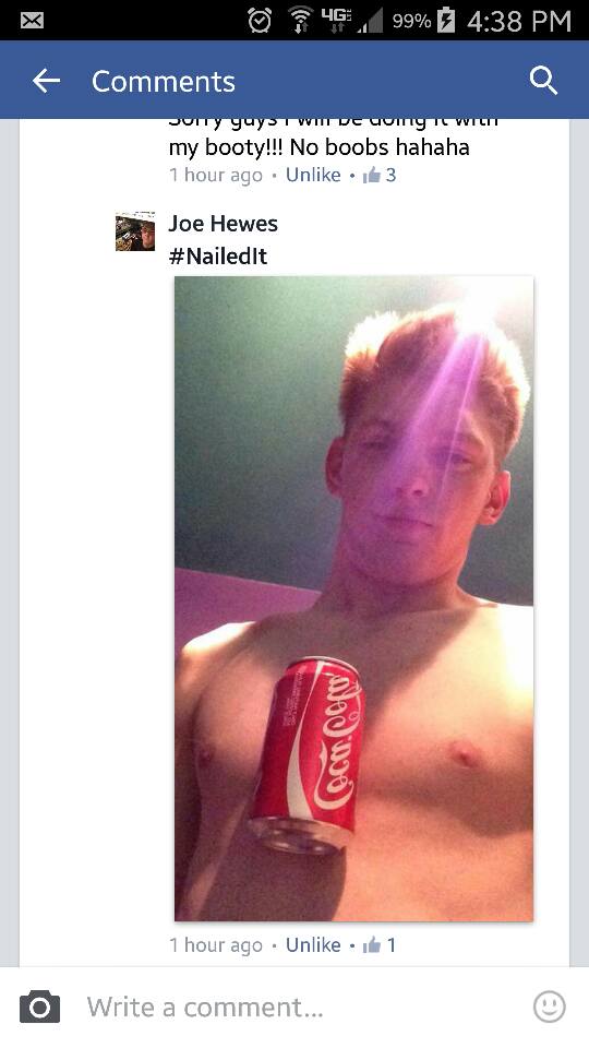 Не успели все забыть про Ice Bucket Challenge , как по Сети начал распространяться новый флешмоб. На этот раз вызов брошен всем девушкам — смогут ли они удержать банку или бутылку Coca-Cola между грудей. Участницам предлагается выкладывать свои фотографии и видео с хэштегом #HoldACokeWithYourBoobsChallenge. Первой участницей акции стала немецкая порноактриса Анике Экина . Остальные работы можно увидеть в нескольких группах в Facebook