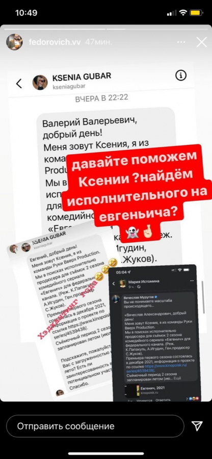Рассылкой занималась некая Ксения из «Руки Вверх Production». Первым скриншот сообщения в сторис выложил Евгений Никишов. Затем полученным предложением поделились Валерий Федорович и Вячеслав Муругов. Их посты начали обсуждать в медиаотрасли. Участники дискуссий иронизировали, почему бы известным продюсерам не согласиться.