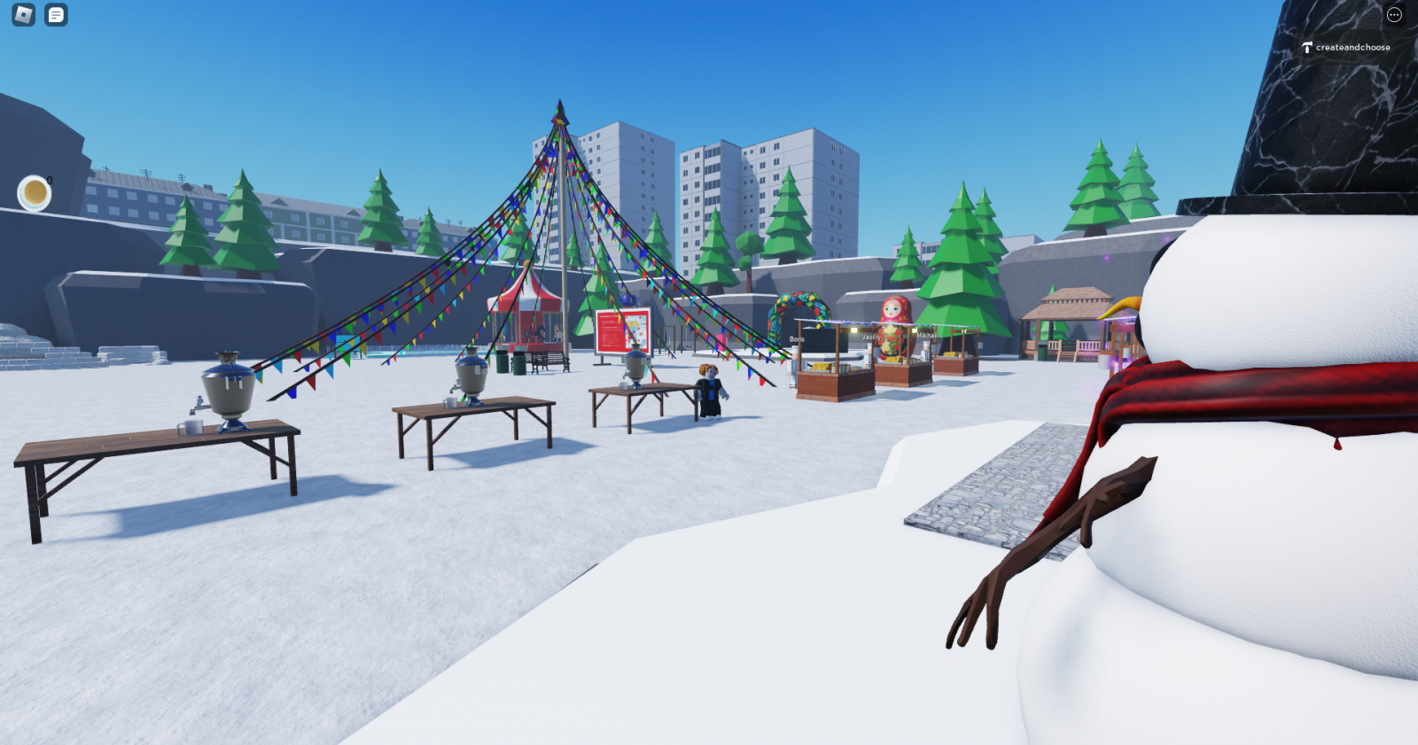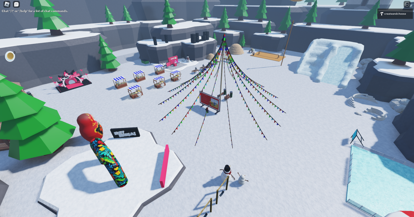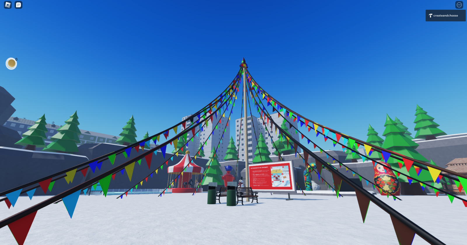 «Пятница!» и «Самокат» построили в Roblox ярмарочную зимнюю площадь с аттракционами, чучелом Масленицы и ларьками. Внутри локации пользователи могли играть в традиционные зимние игры: кататься на катке и ледяной горке, качаться на качелях, играть в игры «Заберись на столб» или «Бой на мешках». Локация была украшена брендингом «Самоката».