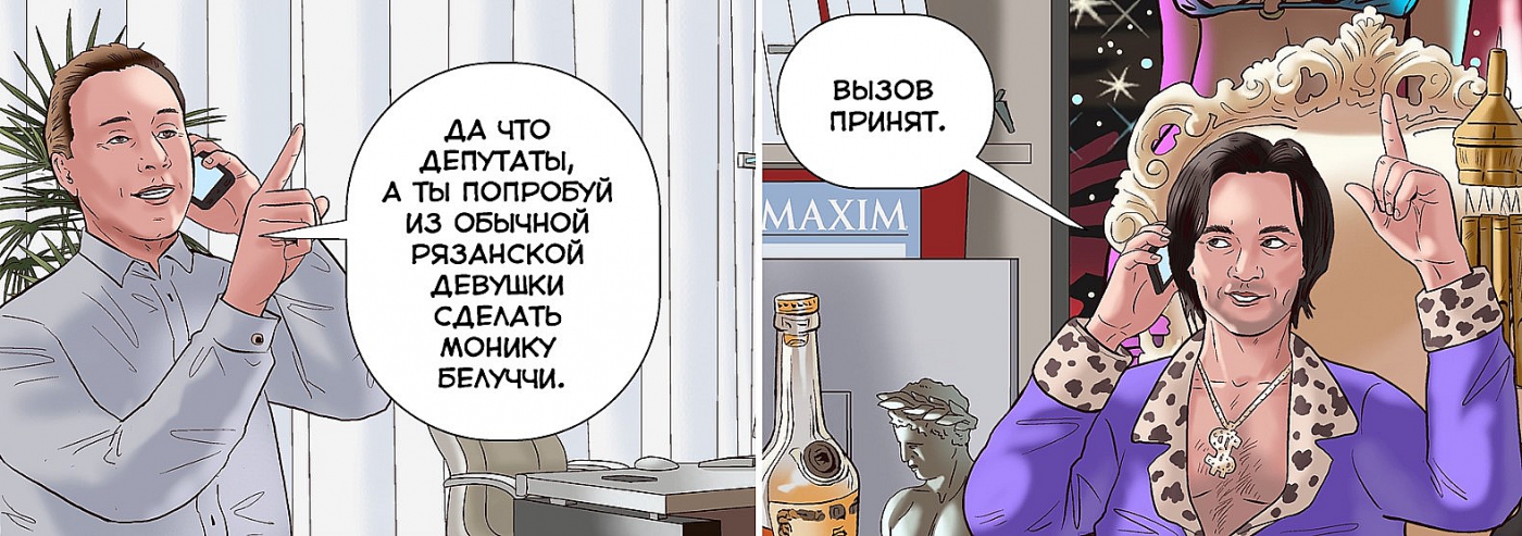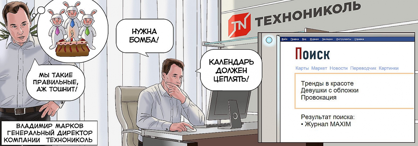 Вместе с календарем была разработана история-комикс о том, как шли переговоры с журналом MAXIM, в коллаборации с которым велась работа над проектом в этом году.