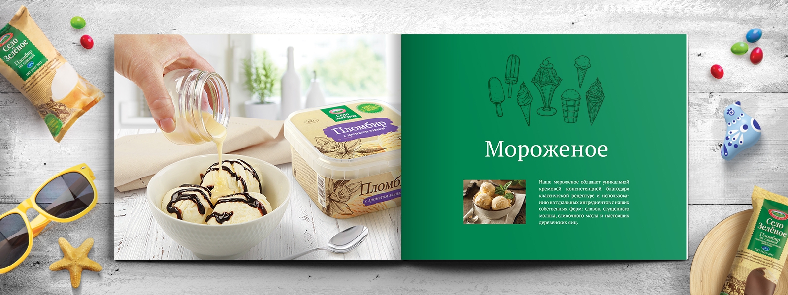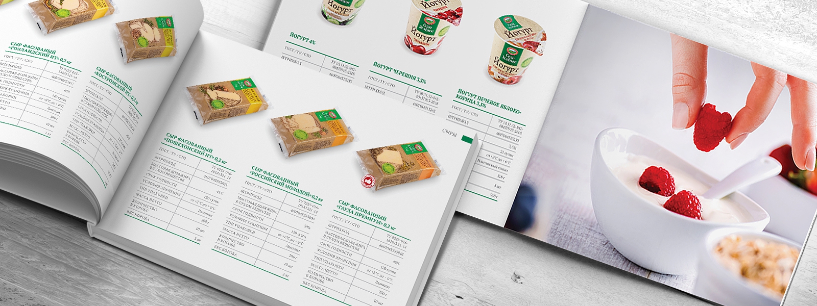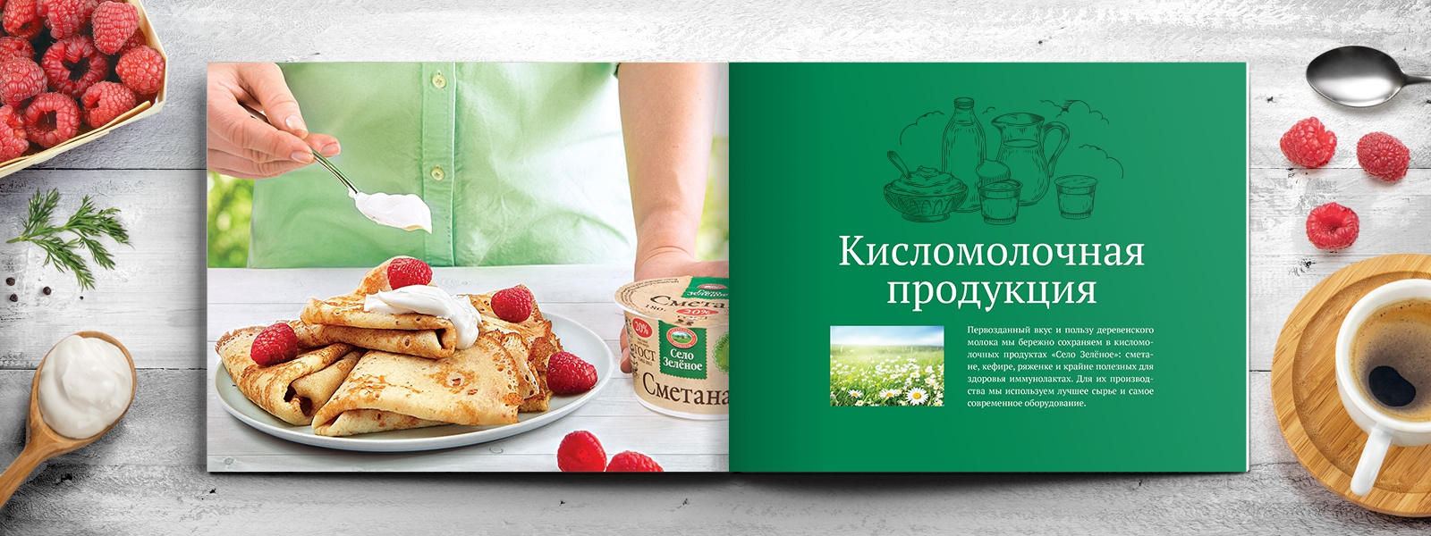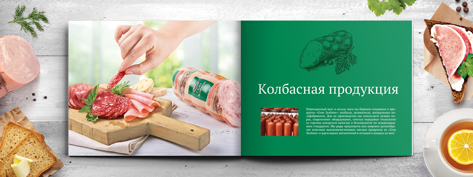 После выхода на рынок портфель бренда «Село Зеленое» постоянно расширялся и к 2019 году составил более 200 SKU в 20 продуктовых категориях, в связи с чем назрела задача по разработке каталога, включающего весь ассортимент. Для этого требовалось разработать идею и стилистику в соответствии со стилем и характером бренда, провести имиджевую фотосъемку для шмуцтитулов, отснять всю продукцию бренда и сверстать итоговый каталог.