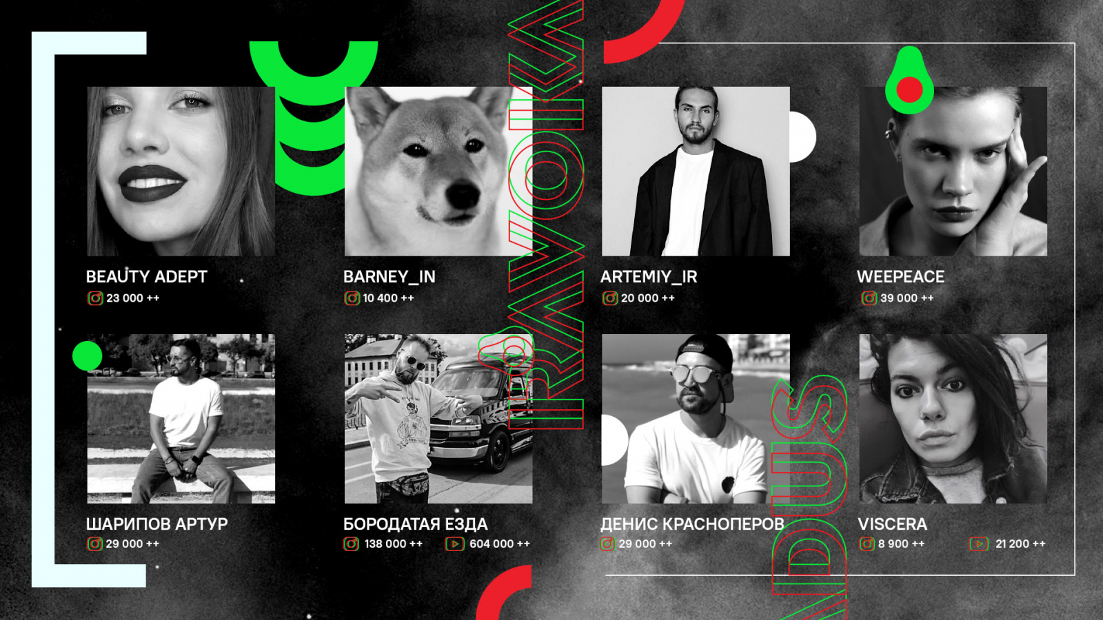 [R]AVOKADUS берет на себя все административные, организационные, юридические, коммуникационные и стратегические задачи по работе с потенциальными рекламодателями. Таким образом, у инфлюенсеров появляется возможность заниматься созданием креативного, смелого и актуального контента, фокусируясь на качестве конечного результата.