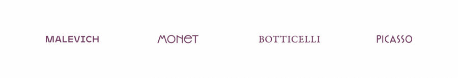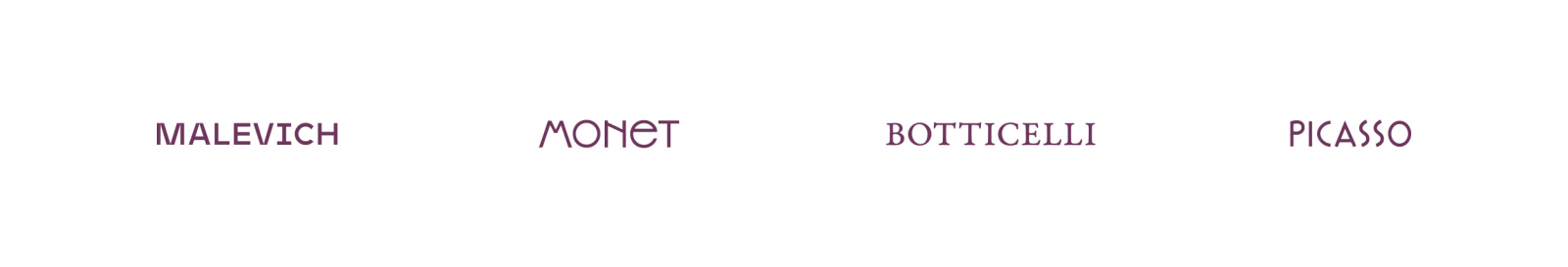 Дополнительно мы создали логотип для каждой из коллекций. Характер букв на них повторяет стиль художника.