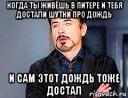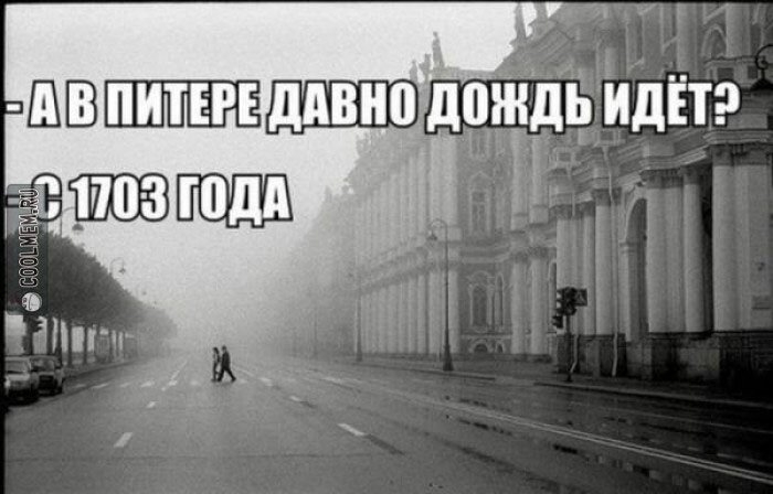 Что приходит на ум, когда вы думаете про Питер? Правильно — дождь! Пасмурная погода давно стала визитной карточкой города на Неве. Дождю посвящены сотни песен, стихов, мемов и даже памятник в самом центре северной столицы. Поэтому мы ни на секунду не сомневались, что эта тема будет более чем актуальна для питерцев.