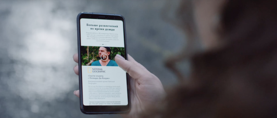 Решив проблему связи, мы задумались о том, что люди будут делать в нашем дождевом интернете. Ведь иногда люди прячутся от дождя по 15−20 минут, которые они могу провести с пользой для себя. Так у проекта появились контентные партнеры — National Geographic, WWF, Greenpeace и Psychologist. Подключившись к сети Rain Wi-Fi, можно было зайти на сайт заряжендождем.рф и получить доступ к видео, обучающим тестам, статьям и даже фильмам, среди которых, например, был известный видеопроект National Geographic «Спасти планету с Леонардо Ди Каприо».