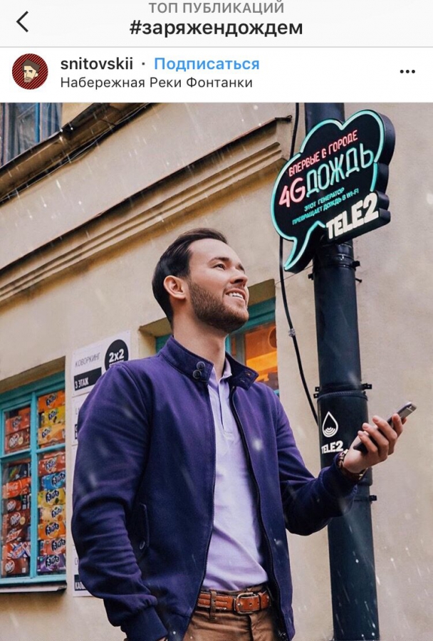 Запустить кампанию было решено с презентации девайса в арт-кластере «Голицын Лофт». За неделю до старта в городе дождей, как назло, закончились тучи, и мы несколько дней ждали осадков, чтобы продемонстрировать работу прибора журналистам и телевидению. У проекта была сильная PR-поддержка и большая кампания в социальных медиа. Тема оказалась живой и очень понравилась жителям Санкт-Петербурга. Люди активно реагировали, комментировали, участвовали в конкурсе — пользовались генератором и фотографировались с ним. Фото можно найти по хештегу #заряжендождем.