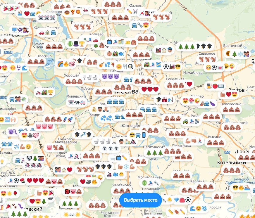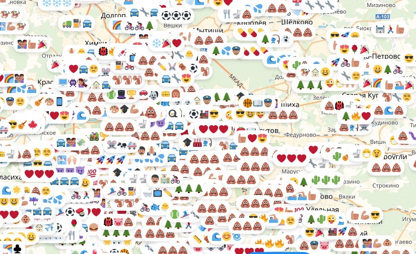 Сервис тут же начал пользоваться небывалой популярностью у пользователей социальных сетей. На карте Москвы уже практически нет свободных от эмодзи мест.