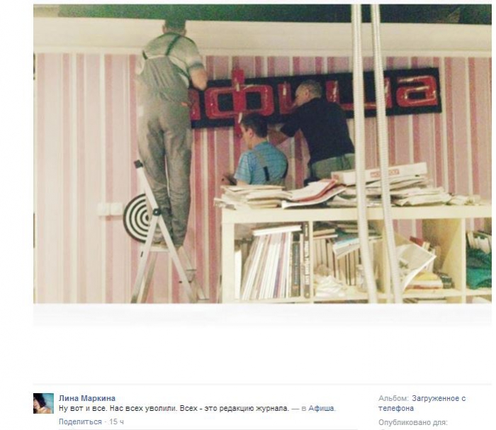 Управляющий директор «Афиши» Варвара Мельникова подтвердила, что редакция бумажного журнала сокращают в связи с решением о смене формата. «Логично, что мы начинаем переделывать структуру. Редакции журнала спасибо, со многими, возможно, поработаем ещё», - написала она в Facebook.