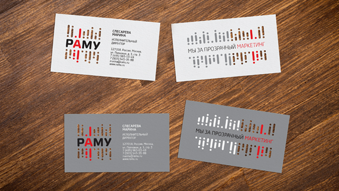 Новая концепция развития Ассоциации выражена в слогане «Мы за прозрачный маркетинг!» и во всех элементах айдентики: цветовой палитре, шрифтах, логотипе, в дизайне сайта www.ramu.ru, полиграфической и сувенирной продукции.