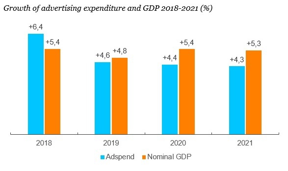 Рост расходов на рекламу в интернете объясняется дублированием контента в видеоканалах и социальных сетях, которые, как ожидается, будут расти в среднем на 18% и 17% в год соответственно до 2021 года. Эти каналы коммуникации становятся все выгоднее и востребованнее с ходом развития технологий смартфонов, скорости соединения, точности таргетинга и выдачи рекламы, провоцируя значительный рост инвестиций в контент. Технология 5G, запущенная в Южной Корее и США в апреле, которую начинают внедрять и в других странах, повлияет на востребованность этих каналов среди брендов за счет скорости и возможности обратной связи.