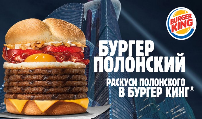 В продолжение провокационных акций, компания Burger King выпустила «Полонский бургер». Попробовать его пригласили, в первую очередь, журналистов.