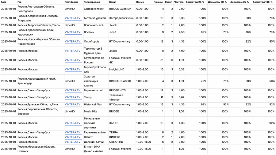 - Выявить конкретные передачи и временные слоты, где ваша целевая аудитория проявляет наибольшую активность.
