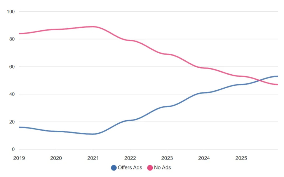 77% рассылок в 2025 году включали рекламу и предложения спонсоров против 72% годом ранее. Впервые количество писем со спонсорской поддержкой превысило письма без нее. При этом доля рассылок с целью перекрестного продвижения снизилась до 61% с 74% годом раньше.