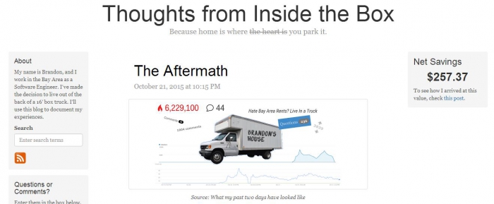 Разработчик Брендон описывал свои будни в блоге, чтобы друзья и родственники убедиться, что он не умер «в какой-нибудь ужасной аварии». Однажды он попросил поделиться своей историей и получил множество откликов. В первый же день у его блога было 2 млн просмотров, всего же пост посмотрели более 6 млн раз.