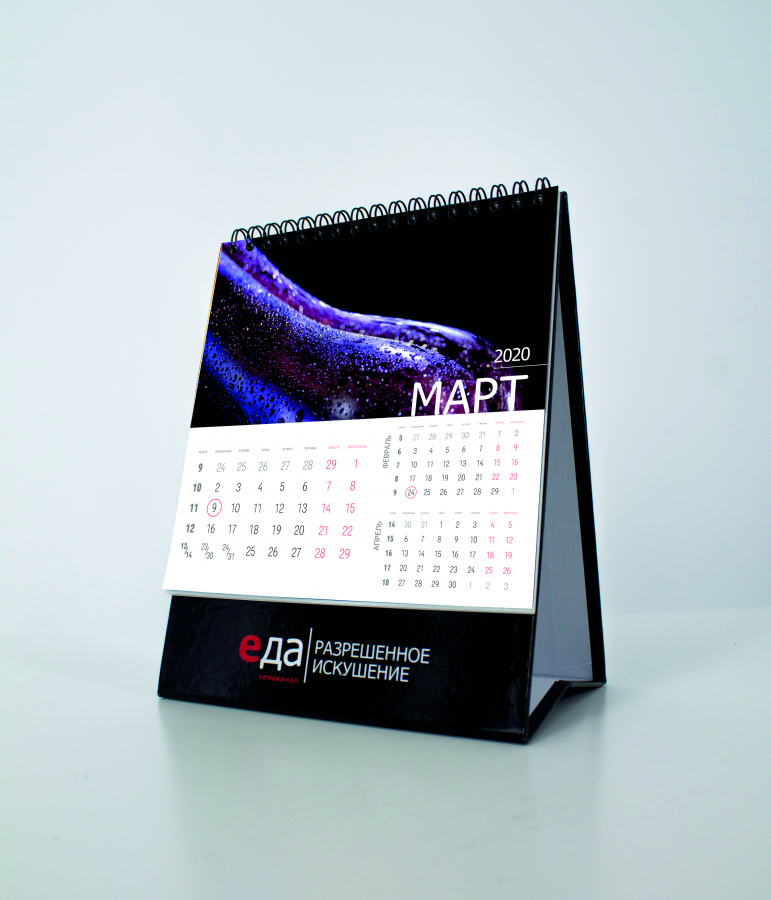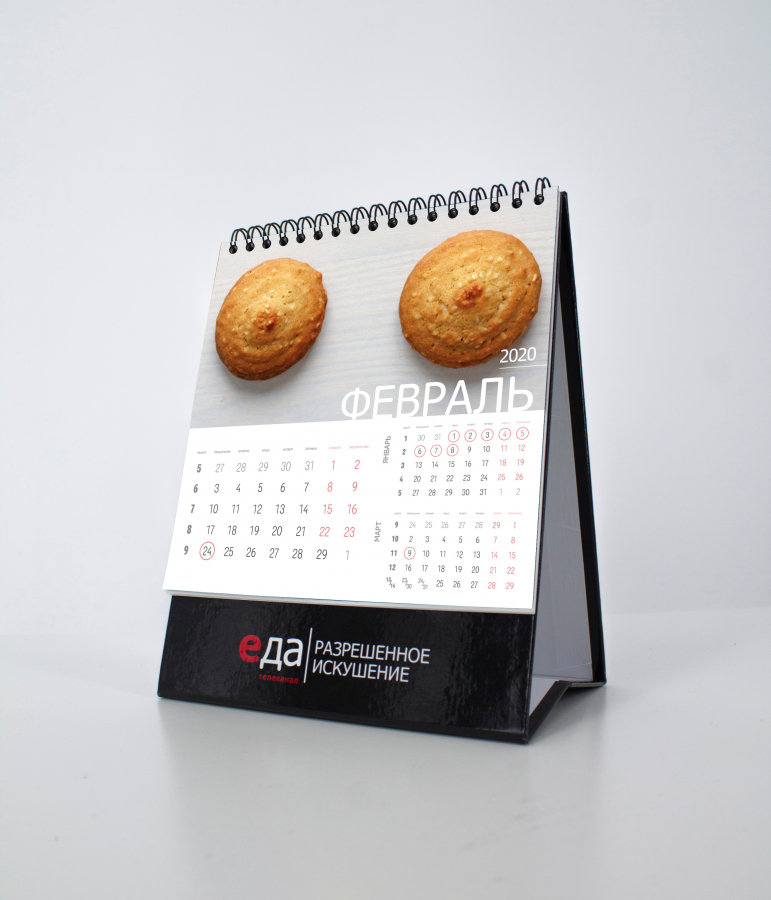 Телеканал «Еда» представил календарь на 2020 год, который является иллюстрацией нового слогана канала «Разрешенное искушение». Это перекидная версия, каждый месяц иллюстрирован фотографией овоща, фрукта или даже печенья в необычном и порой очень игривом ракурсе.
