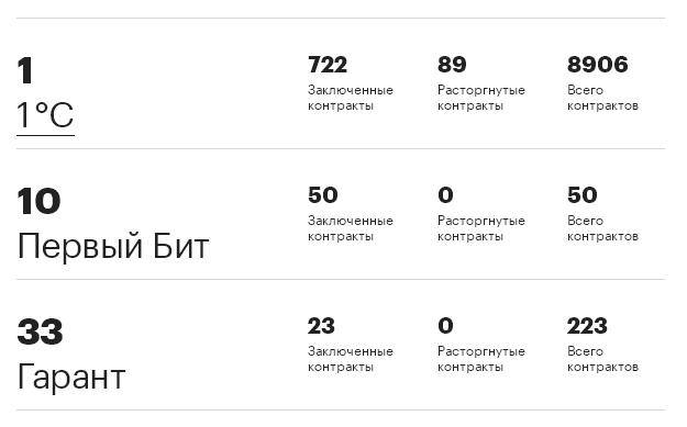 Поставщик софта для автоматизации бизнеса 1С вот уже четыре года подряд занимает первую строчку общего и IT-рейтинга. 1С стабильно заключает 650−750 договоров с франчайзи в год, расторгает при этом порядка 90. Общее число контрактов компании на конец 2018 года составило 8906. В 1С лидерство объясняют доступностью франшизы и заинтересованностью конечных клиентов в автоматизации бизнес-процессов. В нынешнюю десятку самых востребованных франшиз вошел один из партнеров 1С — «Первый Бит» (№ 10).