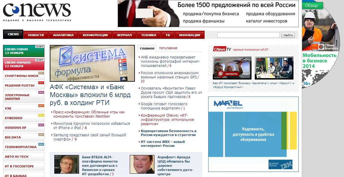 РБК ведет переговоры о продаже интернет-издания CNews. Проектом интересовались компании КРОК, IBS и «Армада», сообщает «Лента.ру».