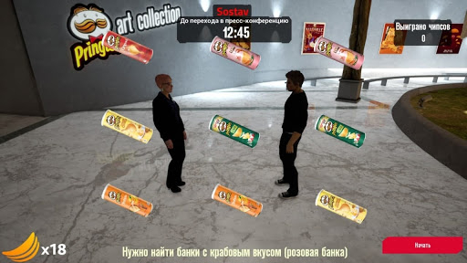 Мы создали несколько простых игр, которые помогали получить доступ к лайв-залу, где проходила пресс-конференция. В них игрокам предлагалось найти банку с крабовым вкусом — за правильные ответы они получали чипсы, которые можно было обменять на пароль.
