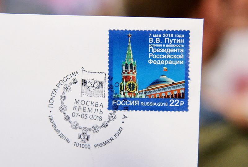 К марке также выпустили тематический конверт. На нем изобразили президентский штандарт и памятную надпись.