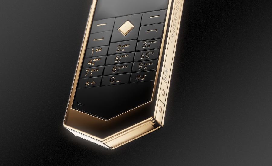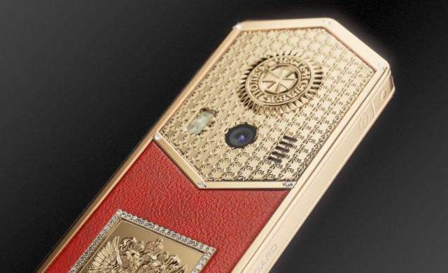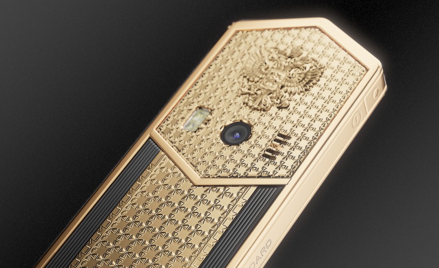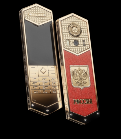 Красный цвет кожи, золотой герб и даже шрифт в дизайне телефона — полностью повторяют те, что украшают обложку Конституции, а медальон с надписью «Польза, честь и слава» заимствован со Знака Президента Российской Федерации, представляющего собой символическую копию ордена «За заслуги перед Отечеством». Корпус телефона отлит из золота 750 пробы, декорирован натуральной кожей, гравировками и 95-ю бриллиантами. Этот телефон выпущен лимитированной серией из 7 экземпляров, что символично дате инаугурации — 7 мая.