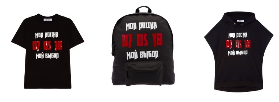 Российские дизайнеры, вдохновленные прошедшими выборами и сегодняшней инаугурацией президента Владимира Путина, выпустили девять капсульных коллекций, продажа которых стартовала в 12:00.